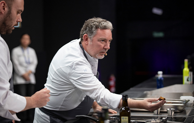 He showed some of his creations at Enigma, playing with the sea and the land, and referring to his time at El Bulli. ‘The fun thing about creative cooking is knowing when the dish is finished. The difficult thing is not to start, but to finish’, he said, before tackling some of his preparations.