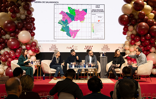 To support his participation and add a liquid touch to this masterclass, the sommelier served the attendees two unique wines that have surprised him in recent months, and which, in some way, represent the current revolution in the world of wine in contrast to consumer perception: an Airén aged on lees from Garage Wine, in Quintanar de la Orden (Toledo), and a 2009 red from Bodegas Buezo, in Arlanza.