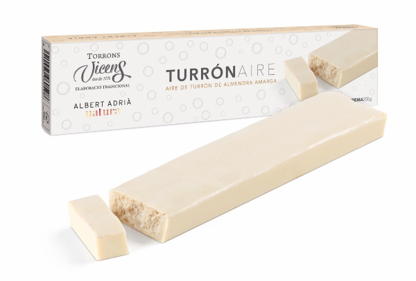 This contemporary reinterpretation of traditional soft nougat retains the flavour of almonds or chocolate, but has an extremely light, honeycomb-like texture that melts in the mouth. The technique is inspired by avant-garde pastry-making processes — similar to those used at elBulli and in subsequent projects — whereby the nougat mixture is beaten to incorporate air, creating this ethereal sensation in the mouth.