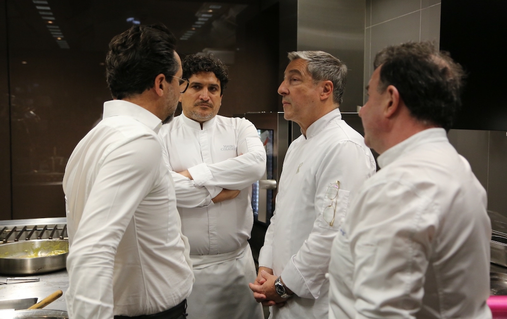 Mauro Colagreco, Joan Roca, Quique Dacosta, José Andrés y Martín Berasategui , que suman en conjunto 25 estrellas Michelin, preparan esa comida de valor incalculable para un invitado de excepción.